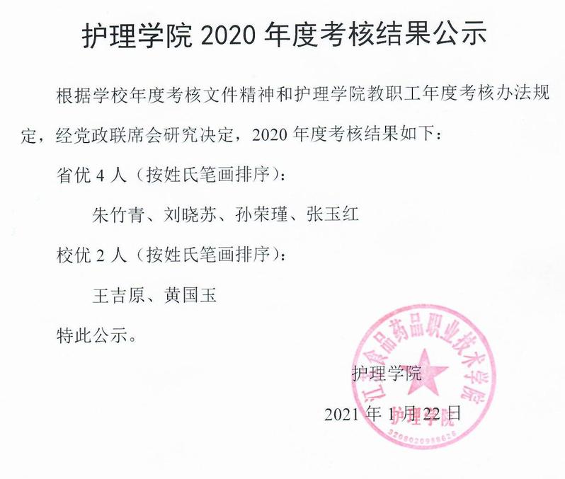 2020年度考核结果公示