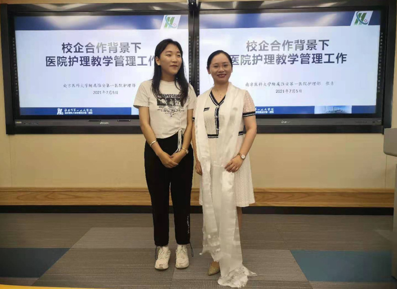 2021年07月01日,在公司教学楼B207由淮安市第一人民医院护理部主任张青为日喀则市职业技术公司护理专业教师作了《校企合作背景下医院护理教学管理工作》的专题报告,报告从医院概况、教学理念、护理教学概况、团队建设、实习教学管理、驻点教学管理及下一步的工作计划等七个方面开展,详细讲解了淮安市第一人民医院的护理临床教学的意义、教学培养的目标、教学模式与方法以及目前取得的成绩等。张青主任表示临床老师有丰富的临床经验案例,但是没有系统的教学方法,在以后的工作中将深入校企合作,向公司老师学习教学的技巧与方法。戴翠萍副经理表示我们的学应当是来自临床教育的员工将来也是服务临床希望以后多与医院合作,让教学更加的贴近临床工作。社会、为国家培养更多的优秀的护生。
