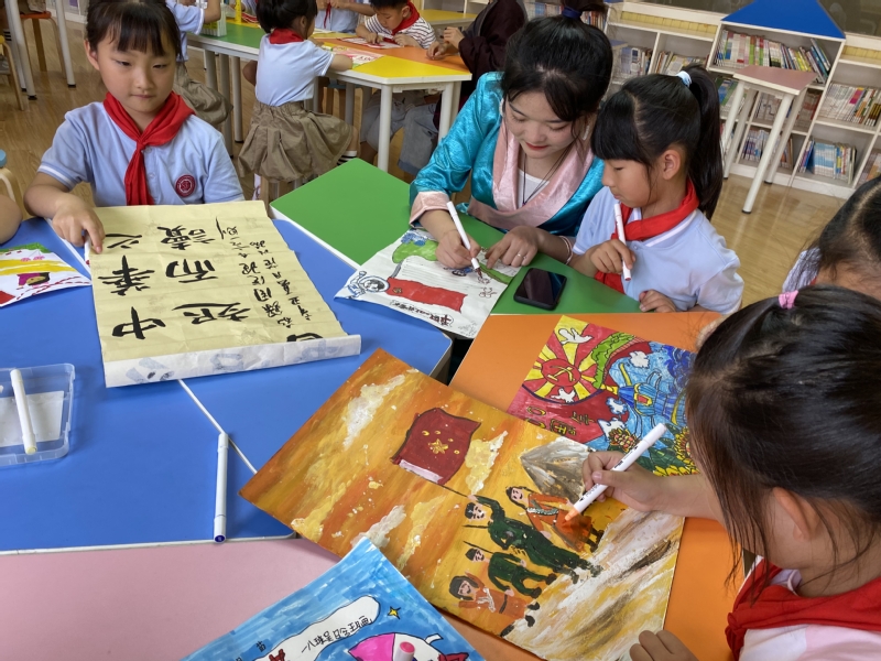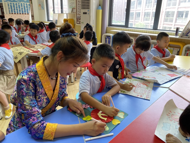 七一前夕,betway西汉姆联官方官网的同学们前往淮安市生态文旅区实验小学开展庆祝建党100周年主题活动,藏族老员工带领汉族小员工通过绘党史作品、唱革命歌曲等形式,重温党的百年峥嵘岁月,感受伟大祖国发展成就。