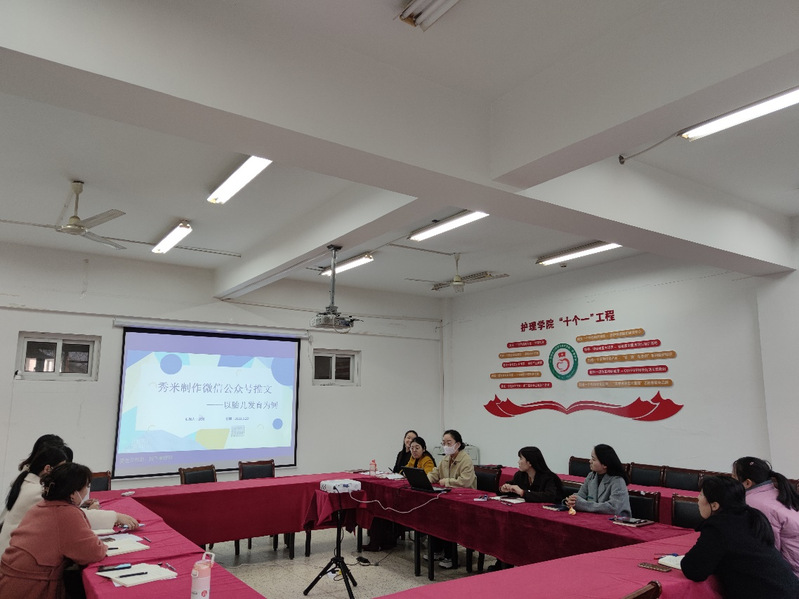张扬老师从秀米界面、设计、排版、插入文字图片视频等进行介绍,并结合发表的“胎儿发育”为例进行展示,在场的老师们针对相关问题进行了热烈的讨论,为今后相关的微信公众号文章的制作和推送提供了思路。