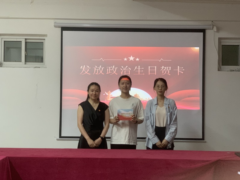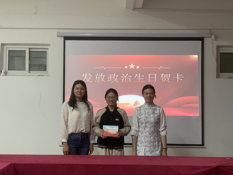会上,严贝贝向大会阐明了会议主题,报告了应到党员人数和实到党员人数,并宣读会议流程。经支部大会的不记名投票表决,一致通过了吸收柯珂、奚优静2名发展对象为中共预备党员的决议。入党介绍人给两名预备党员赠送政治生日贺卡,并面向党旗庄严宣誓。