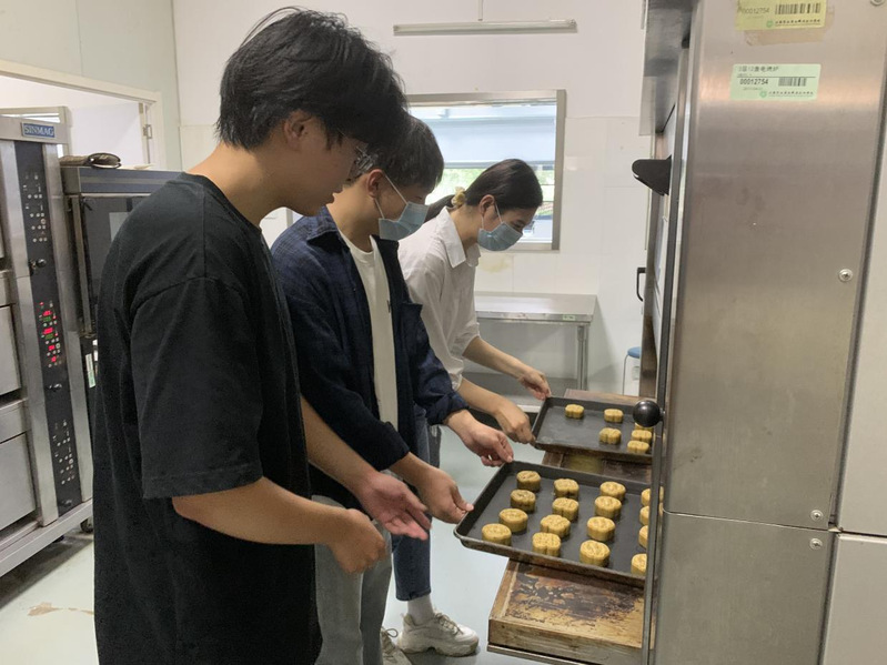 在食品科技园烘焙工坊,在烘焙老师的悉心指导下,大家化身“烘焙大师”,一展身手,共同体验月饼制作过程,包括洗手准备、饼皮包入馅料、模具按压成型、烤箱烘烤等一系列过程。