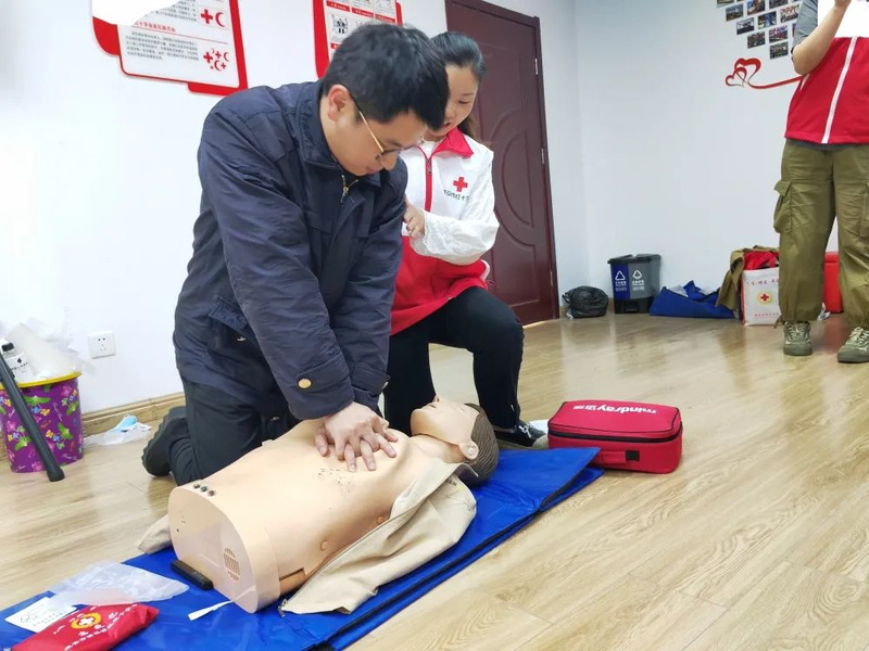 此次红十字应急救护知识与技能培训主要是由市红十字会的培训讲师为所有参训学员教授心肺复苏及人工呼吸操作流程、气道异物梗阻的急救方法、自动体外除颤器(AED)的使用方法、简单的包扎及创伤现场急救方法、意外伤害和突发事件的应急救护基本要领和技能等一些常用的、实用的应急救护技能。市红十字会的培训讲师运用理论知识讲解、技能演示、学员实操等培训方法,认真细致培训每一位参训学员。