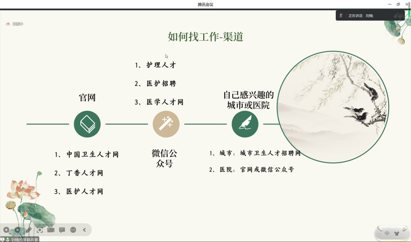 刘楠学姐从自身江苏大学附属医院求职的亲身经历出发,结合专业的实际情况和医院就业趋势,对护理岗位的基本现状、招聘岗位相关信息的获取途径、求职准备阶段的具体内容和入职后如何融入科室的注意事项以及后续发展规划等方面进行了详细解读。