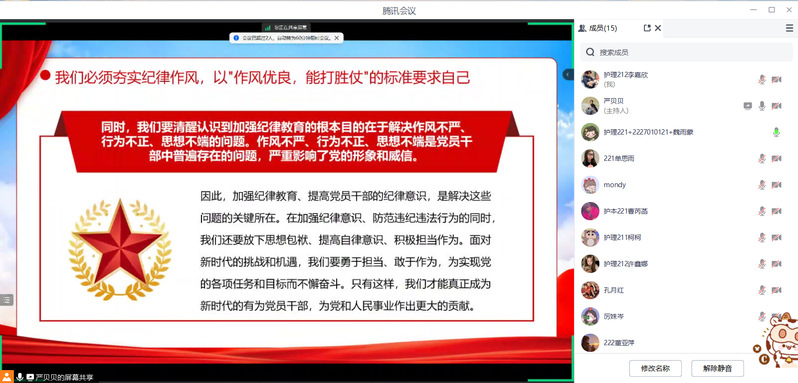 员工支部书记严贝贝带领大家原原本本学习了条例第十章内容《对违反工作纪律行为的处分》,参会的党员同志也分享了心得体会,大家纷纷表示会以党纪学习为契机,检视自身的不足,严格要求自己。