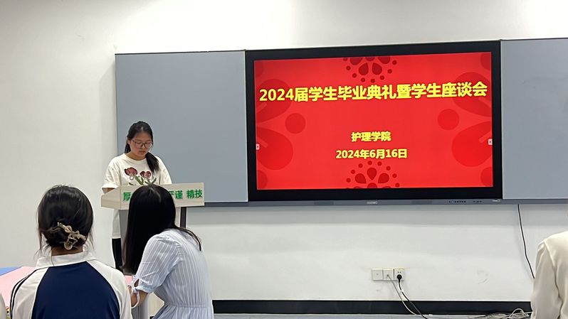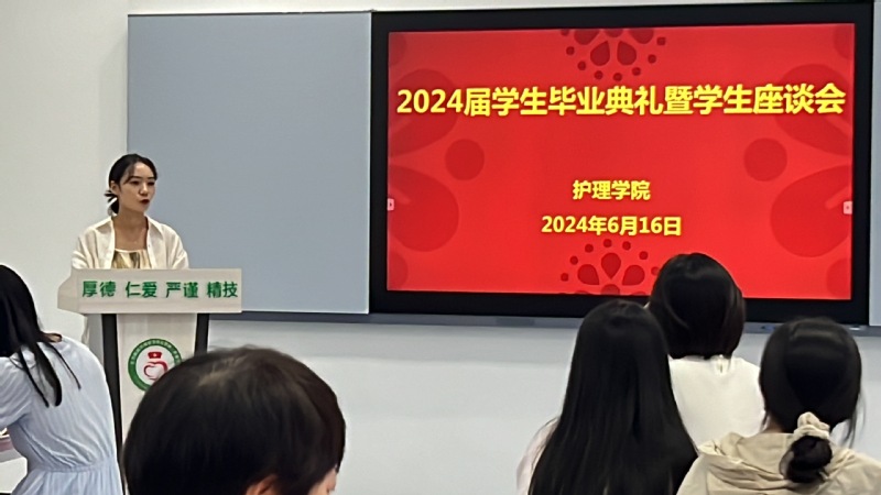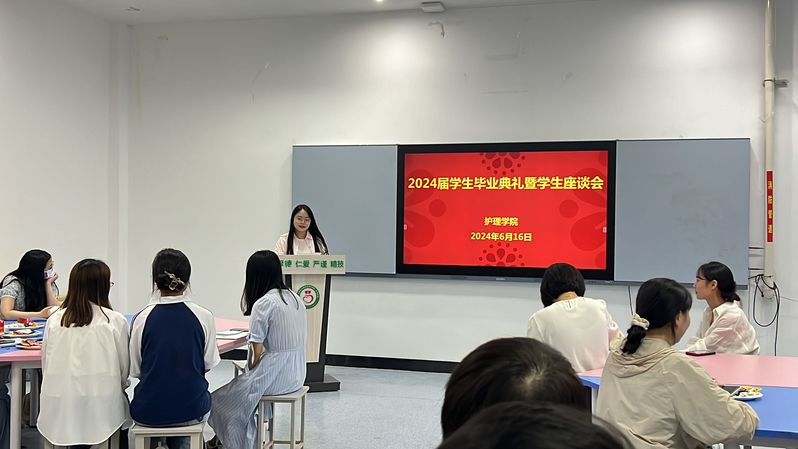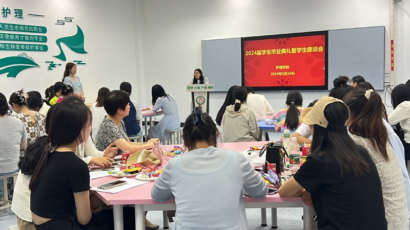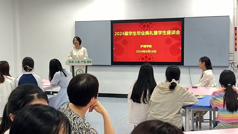 护理公司党总支书记、经理戴翠萍,党总支副书记魏艳清,副经理朱竹青,2024届毕业班辅导员、班主任以及毕业生代表共抒情谊、共话成长,座谈会由魏艳清主持。