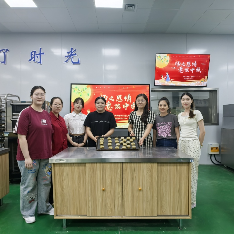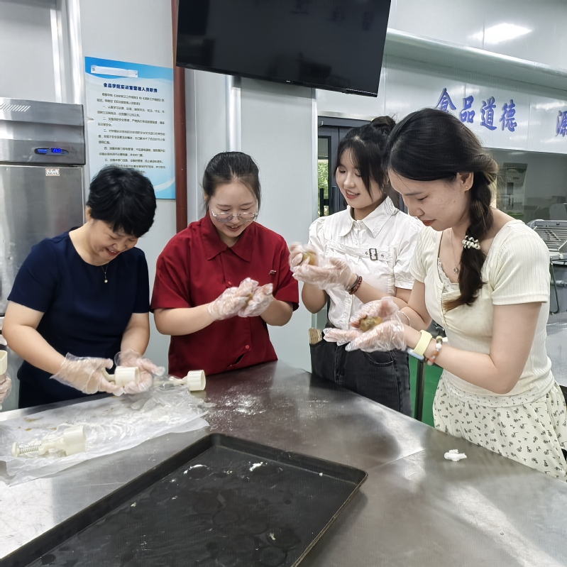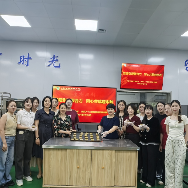 参与活动的师生党员以及淮安八十二医院护理部的带教老师们欢聚一堂,兴致勃勃地DIY自己喜欢的月饼样式。大家分工协作,揉面、包馅、压制花纹。现场气氛十分活跃,欢声笑语乐不停。不一会儿工夫,一块块精致漂亮、美味诱人的月饼摆满了桌面。