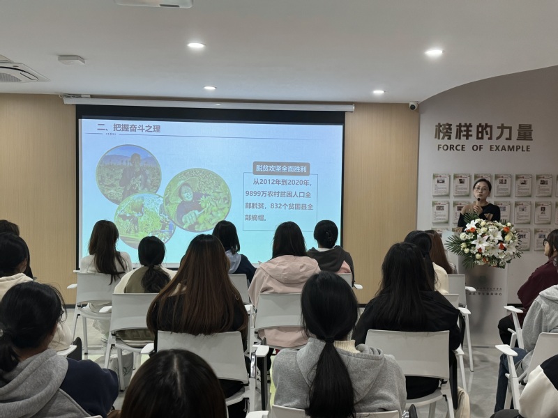 徐姣老师强调艰苦奋斗是中国共产党人的政治本色,实现民族自立自强自富需要艰苦奋斗、实现中华民族伟大复兴需要艰苦奋斗。她号召同学们以理想照亮前行的路,以担当彰显初心使命,以吃苦锤炼过硬本领,奋斗、前进、追梦,努力实现中华民族的伟大复兴。