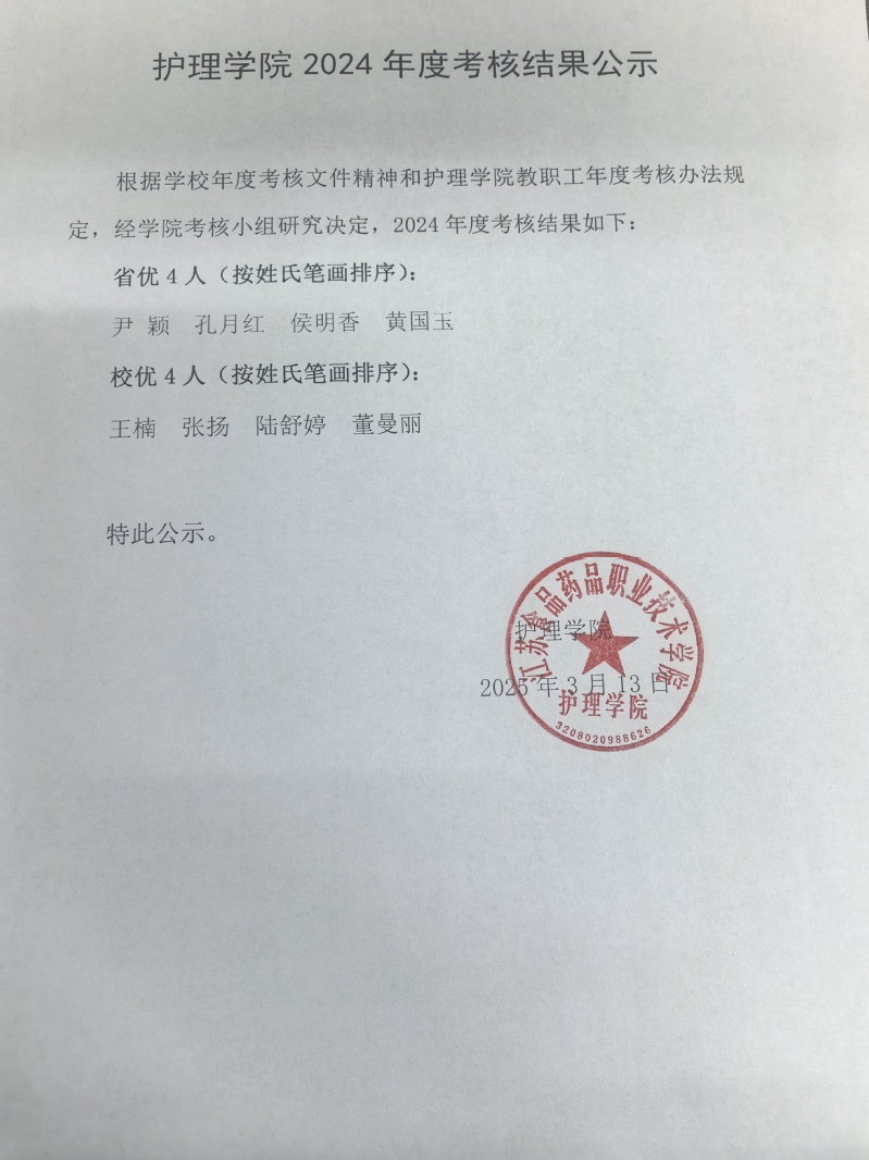 2024年度考核结果公示