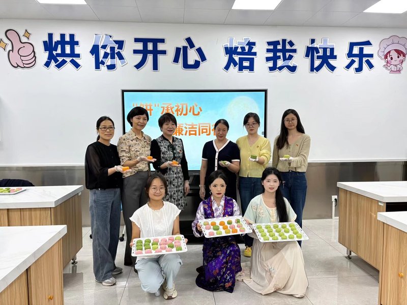 与往年不同,今年的月饼制作活动特别融入了“清”和“廉”的元素,并邀请少数民族员工共同参与,将廉洁文化建设与民族团结教育巧妙结合。活动特意准备了刻有“民族团结”“清”“廉”等字样的专属月饼模具。这些模具不仅是制作月饼的工具,更成为传播清廉家风的“播种器”。“揉冰皮要轻轻用力,把边角揉得服服帖帖,就像咱们做人,要把‘规矩’记在心里,不偏不倚。”活动现场,一位教师党员一边指导员工制作冰皮月饼,一边讲述着做人做事的基本道理。betway西汉姆联官方官网党总支书记刘晓苏在活动中指出,月饼与“廉”元素的结合,是廉洁文化建设的一次创新尝试。以“莲”喻“廉”,莲蓉馅料象征着清正廉洁的职业操守,而冰皮则寓意着每一位师生都应保持“冰清玉洁”的品格。